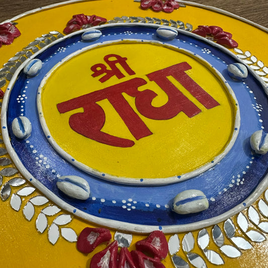Shri radha naam Yellow MDF 12 inch wall hanging painting