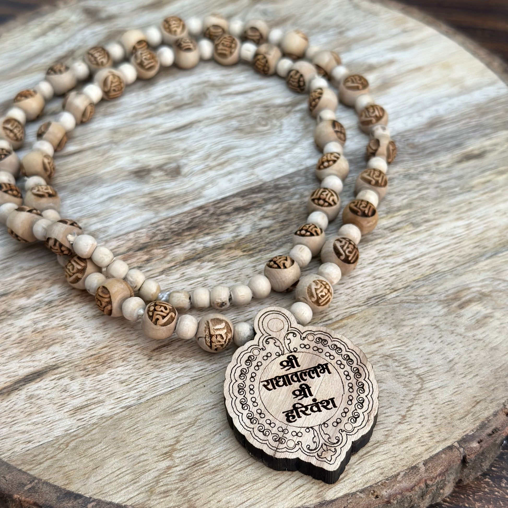 Shri radhavallabh Shri Harivansh tulsi mala with radha engraved beads 24 inch
